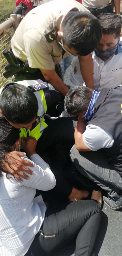 En una maniobra de su amiga y los agentes la logran sostener y la pasan al otro lado del puente para ponerla en un punto un poco más seguro. En ese momento se escucha el llanto y la desesperación. «¡Tómala!». «¡La salvaste!», dice el agente con lágrimas.