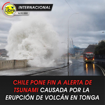 La mañana de este domingo la Oficina Nacional de Emergencias de Chile (Onemi) informó de que se puso fin a la alerta de tsunami decretada ayer, sábado, en seis regiones tras la erupción de un volcán en Tonga, que obligó a evacuar casi todo el borde costero del país.